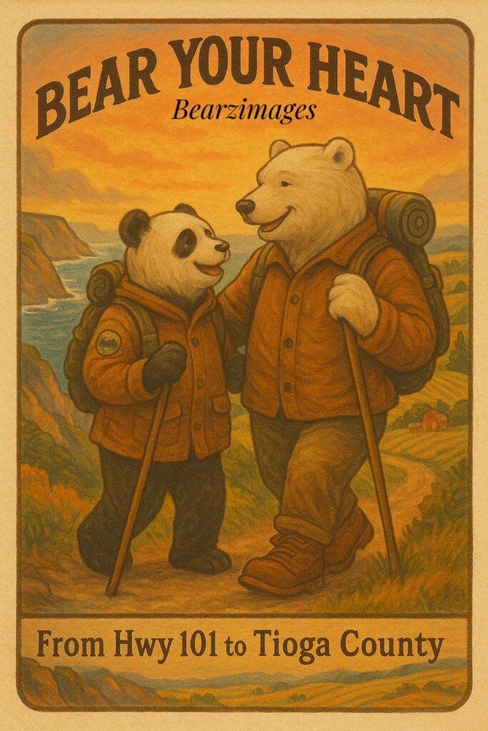 They met on Highway 101, where redwoods whisper secrets older than time and sea cliffs hum lullabies to the stars. The Panda, soft-spoken and full of quiet wonder, carried stories in her eyes. The Polar Bear, strong and warm-hearted, walked with a spirit that glowed like the North Star. Their meeting wasn’t chance—it was resonance. A memory remembered. A promise rekindled.
