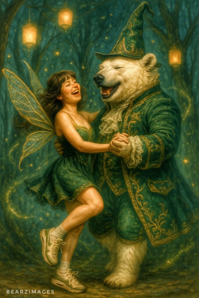 They say that if you wander into the Lantern Grove on a night when the air smells of cedar and rain, you may still see the glow. A faint shimmer beneath the trees, where laughter once tore through the veil. Some say the Polar Bear Wizard and his fairy companion became constellations, others claim they travel through dreams, teaching mortals to remember delight.