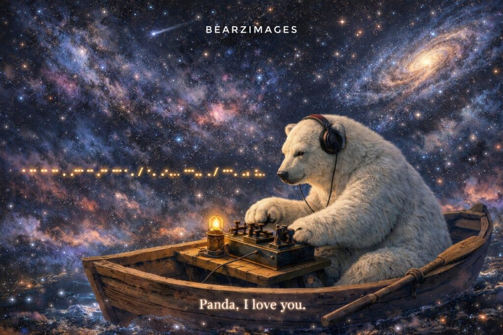 Back in the drifting boat, the Bear pauses. He looks out into the infinite—not searching, not doubting.